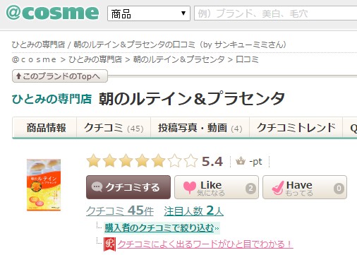 アットコスメの口コミは、モニターさんによるものが多いせいか、5.4ポイントと評価は高いです。